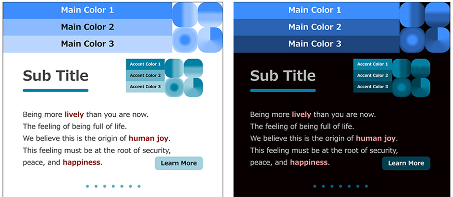 背景色を変えると、自動的に文字色や全体のトーンが変わる!