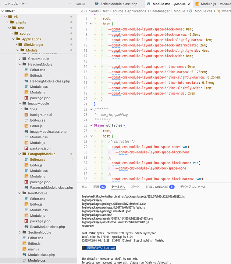 〈デザイン〉を設定したら、いよいよ〈ページ〉を作っていきましょう。文章、画像、表、添付ファイルなど、既存CMS「DaaS(ダース)」の機能はもちろん使えるうえに、どのモジュールを使っても、段組をしても、きちっと「ツラが合う」のがSBの特徴です。新機能としては〈余白〉〈テキストの回り込み〉〈画像の表示位置〉〈区切り線〉〈リスト表示〉〈ルビ〉〈背景色〉など、てんこ盛り!!
