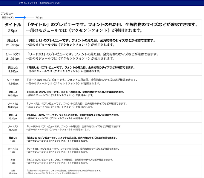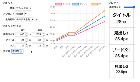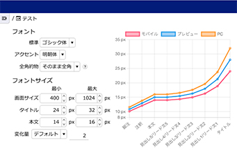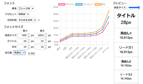 フォントサイズの変化量がグラフになっているのがおもしろい!